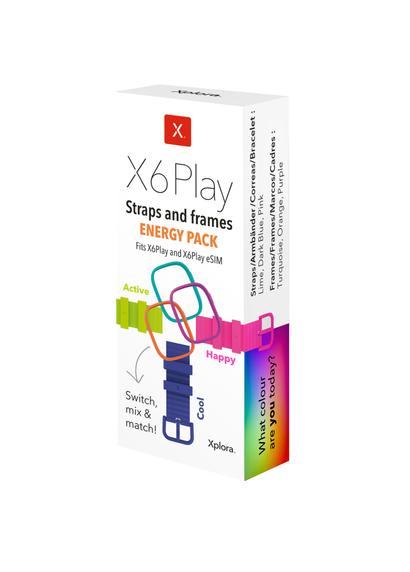 Gi X6Play en energisk oppgradering med Energy Pack! Dette settet lar barn miks & matche mellom 3 armbånd og 3 rammer, slik at de kan skape sin egen unike stil.